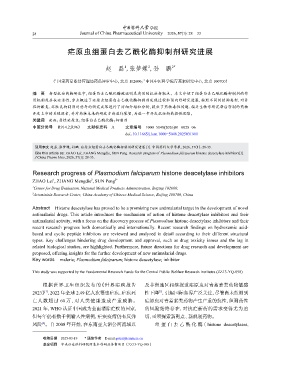 关键词 疟疾;恶性疟原虫;组蛋白去乙酰化酶;抑制剂
