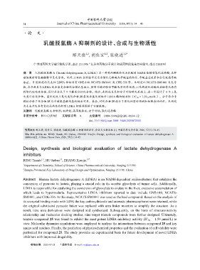 Cite this article as: BING Tiande, HU Jiabao, ZHANG Xiaojin. Design, synthesis and biological evaluation of lactate dehydrogenase A
