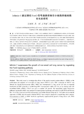 Cite this article as: WANG Liying, ZHOU Xin, WANG Xuerong, et al. Isthmin-1 suppresses the growth of non-small cell lung cancer by