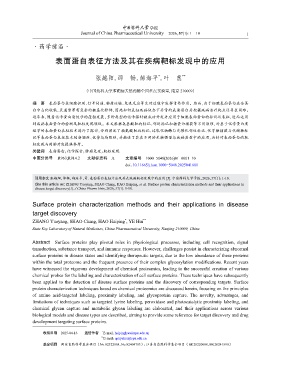 引用本文 张越阳,邵畅,郝海平,等. 表面蛋白表征方法及其在疾病靶标发现中的应用 [J]. 中国药科大学学报,2026,57(1):1-10.