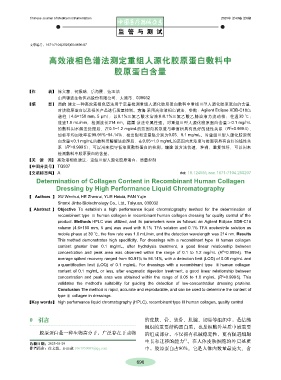 【Key words】 high performance liquid chromatography (HPLC), recombinant type III human collagen, quality control