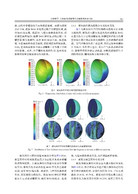 因此,壁面温度极值出现在球罐侧上方与侧下方的 压力较小,与外界压差小,受出口气流扰动的影响