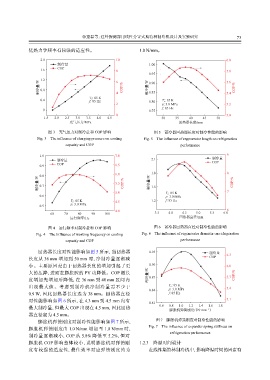 图 4 运行频率对制冷量和 COP 影响 图 6 蓄冷器回热器直径对制冷性能的影响